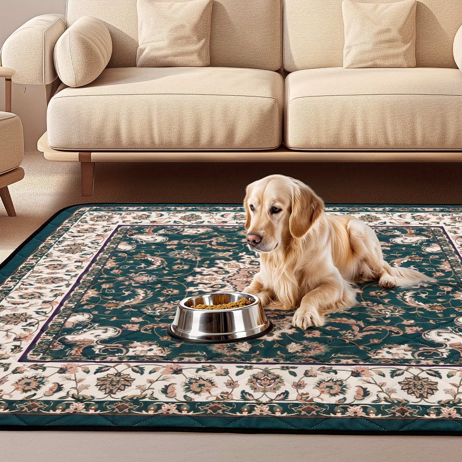 The unique non-slip bottom layer guarantees stability on various surfaces, including hardwood and tile, reducing the risk of slipping or sliding. You can rest easy knowing that your pet can play or rest securely without causing a mess. Our chic Bohemian design not only enhances your pet's comfort but also complements your home decor, creating a warm and inviting space for your canine companion.