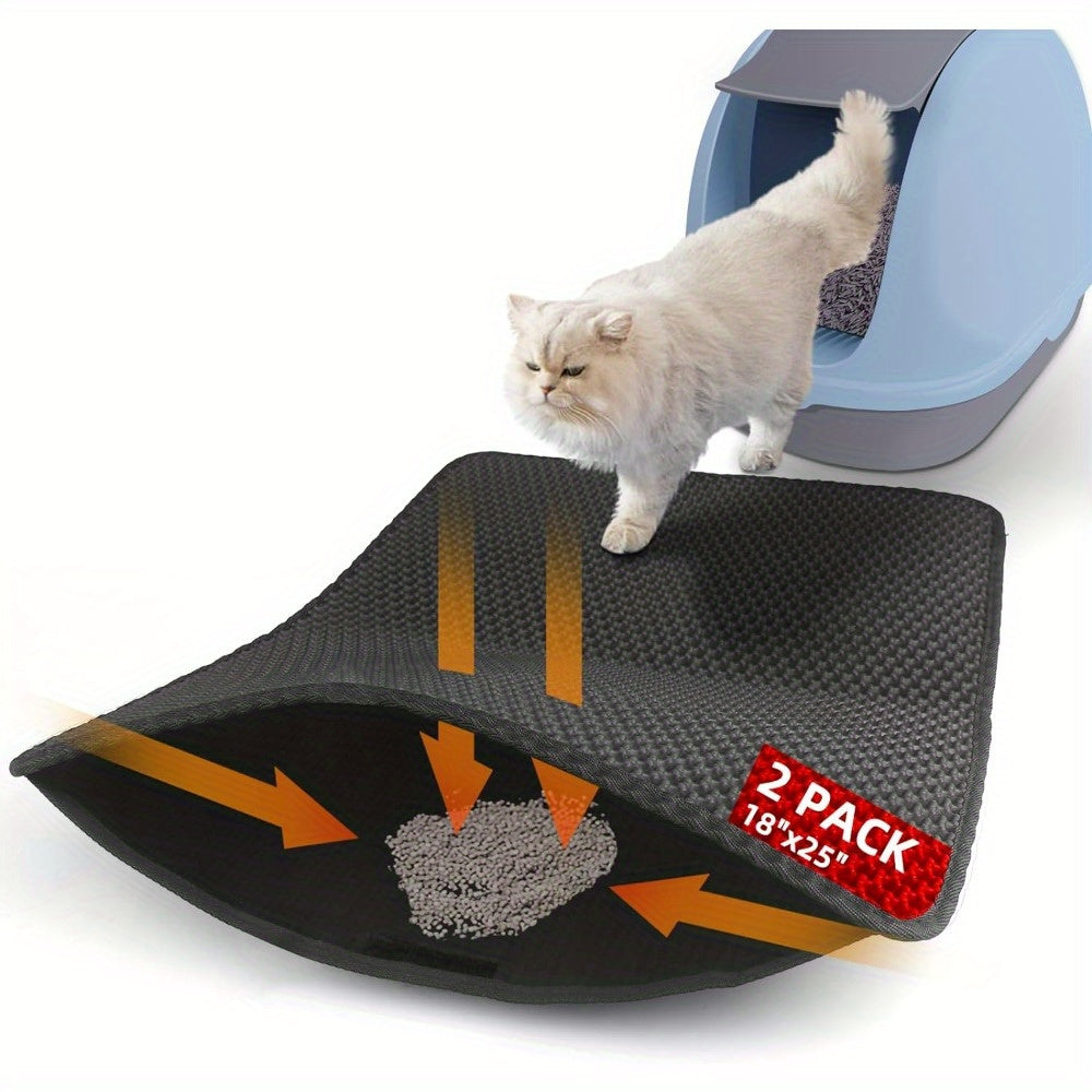 Transform your cat care routine with our 2 Pack Cat Litter Mat Litter Trapping Mat, expertly designed to keep your home clean and tidy while ensuring your feline friend has a comfortable and safe space. Measuring 25" x 18" and available in sleek black, these mats feature a unique honeycomb double-layer design that effectively traps litter and minimizes mess.