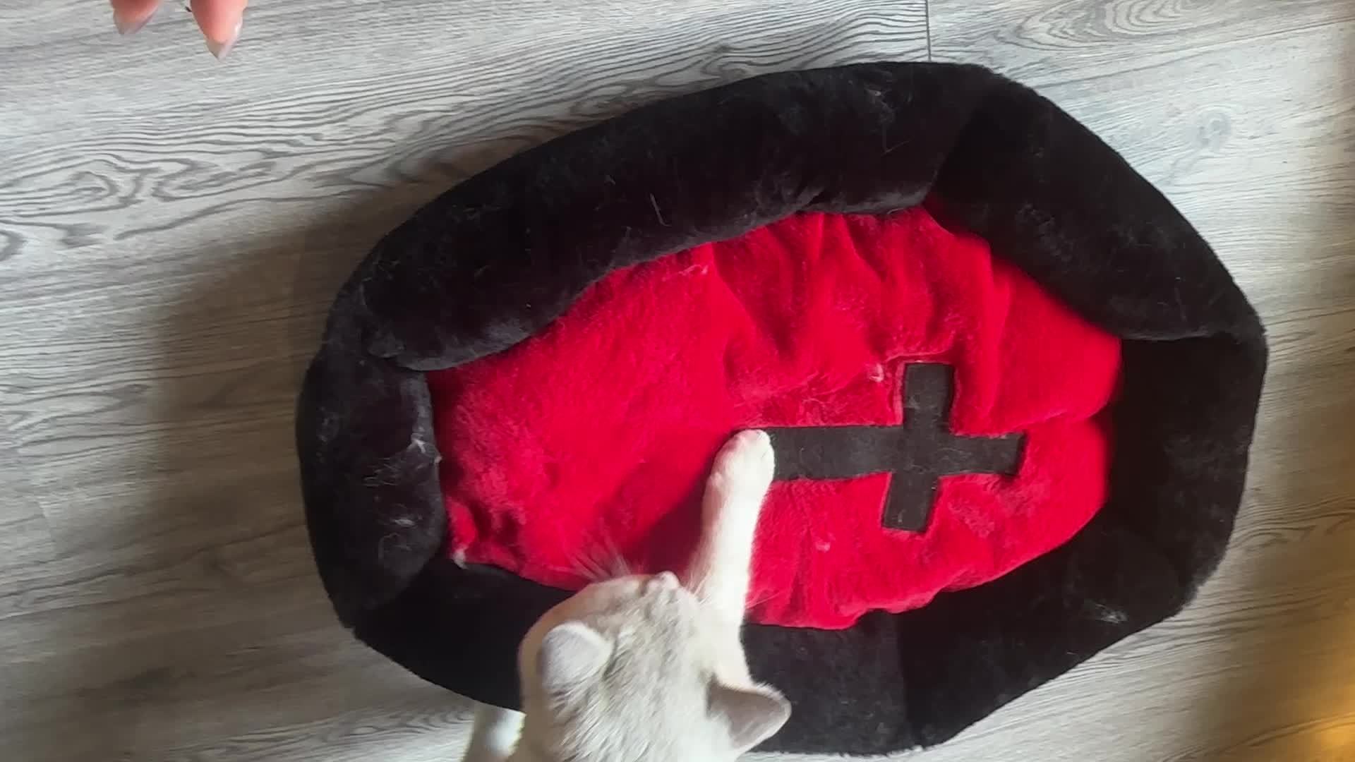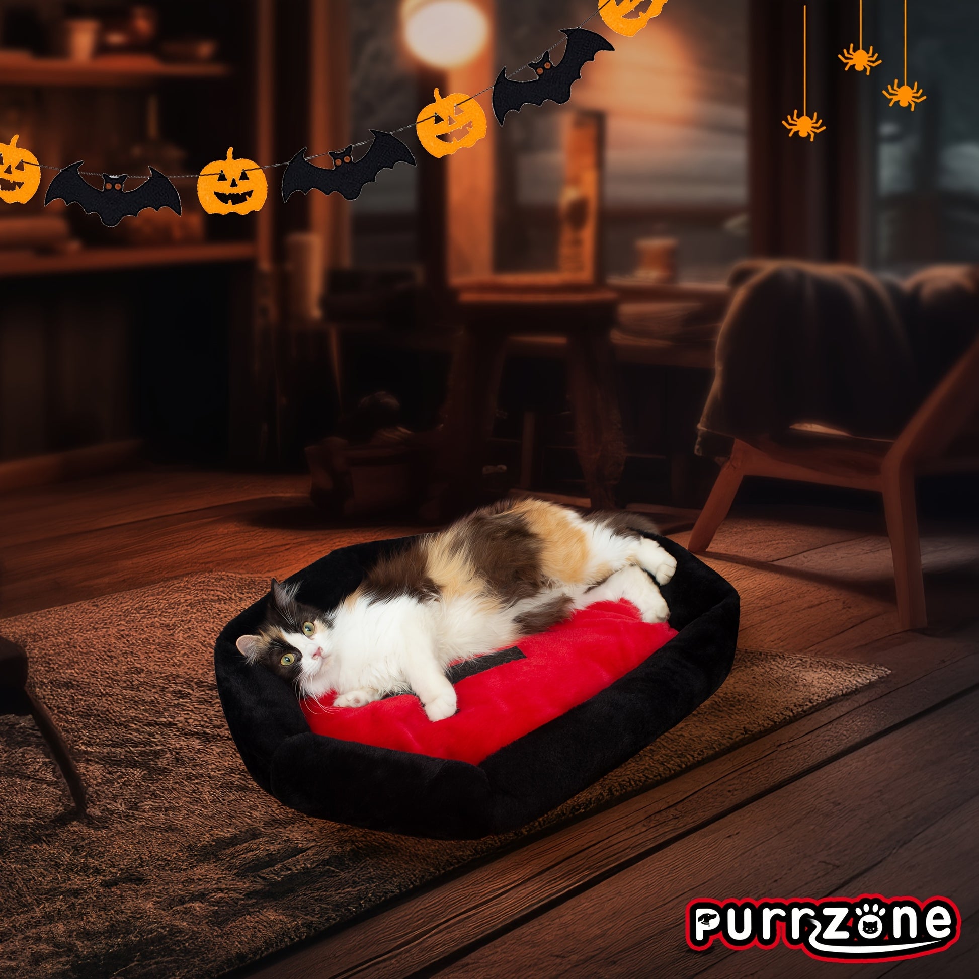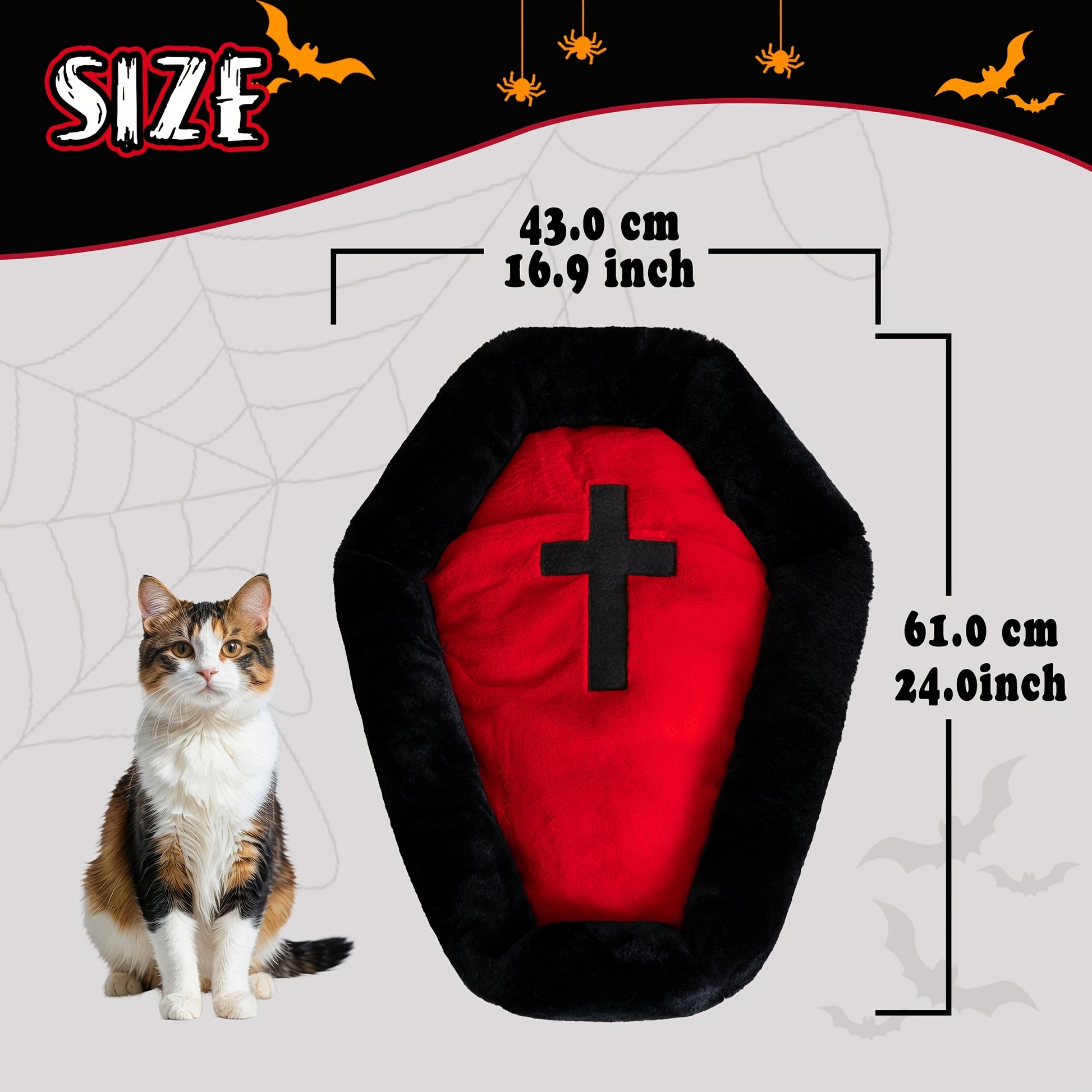 The striking red and black plush fabric creates a sophisticated yet spooky aesthetic, making this bed not just a resting place but also a chic Halloween decoration for your home. Your cat will love snuggling into the fluffy pet bed, especially during colder months.