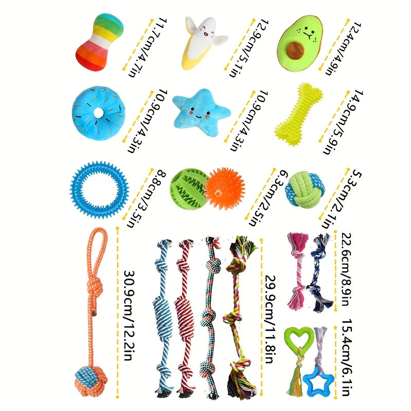 Ensure your puppy's teething phase is both fun and beneficial with our 25pcs Dog Teething Toys, Dog Chew Toys Set For Cleaning And Teeth Cleaning, Dog Vocalization Toys, Leash Toy Set Suitable For Puppies. This comprehensive set is thoughtfully crafted to provide a variety of textures and play options that cater specifically to small breeds and young dogs.