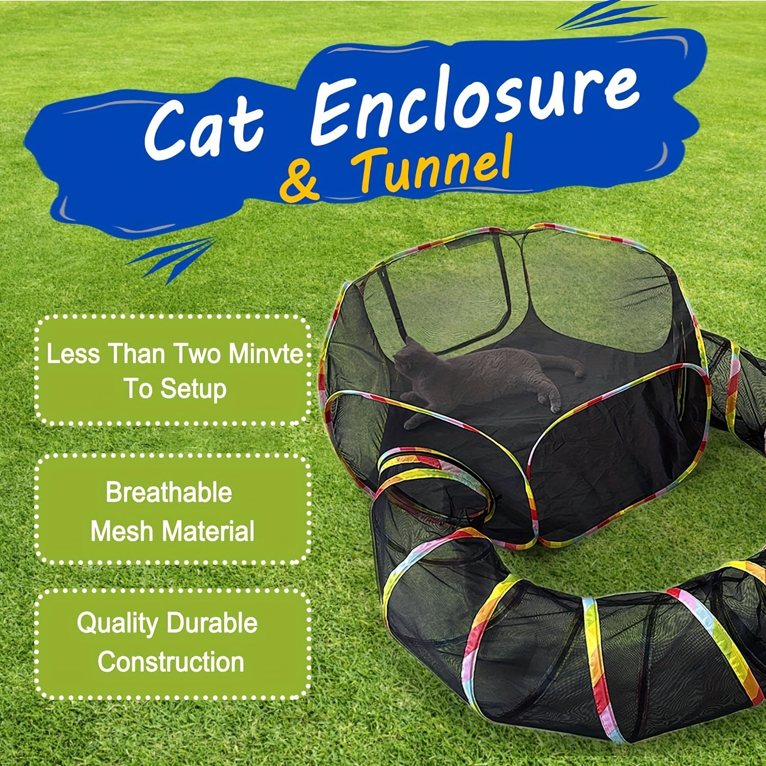Featuring a unique 5-in-1 play configuration, this playpen can be easily adapted to fit your space and your pet's needs. The included 124-inch connecting tunnel adds an exciting dimension to playtime, allowing your cat to explore and exercise in a safe environment.