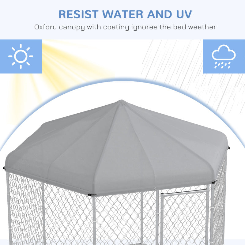 Crafted with premium 360D Oxford cloth, this kennel features a waterproof and UV-resistant roof that protects your dog from harsh sunlight and prevents water accumulation. Your pet will appreciate the cozy environment, allowing them to relax or play freely without the worry of the elements.