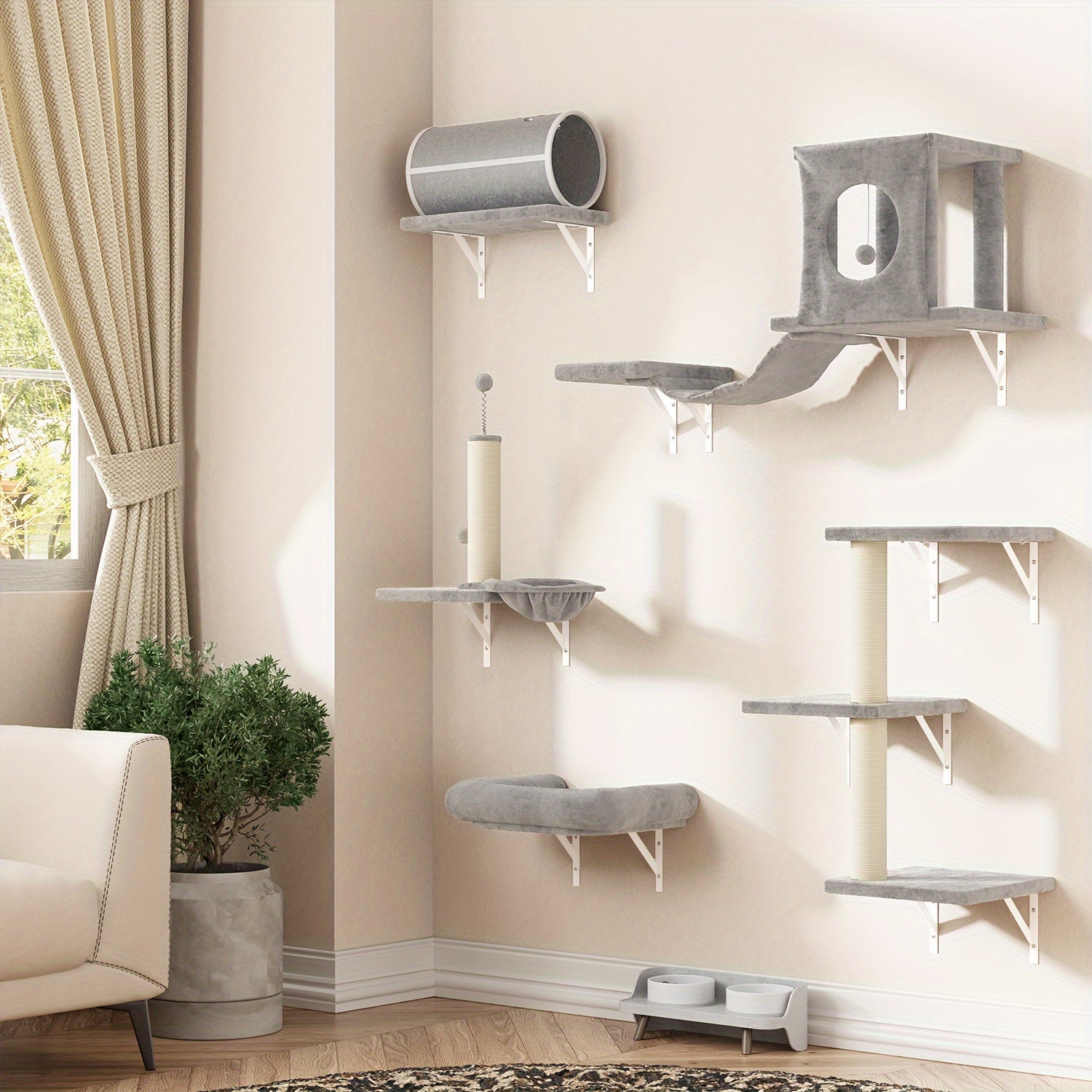 Enhance your cat's living experience while maintaining the elegance of your home. Treat your furry friend to the ultimate luxury they deserve! Order your Bifanuo Luxury Wall Mounted Cat Furniture Set today and watch them enjoy their new stylish haven!