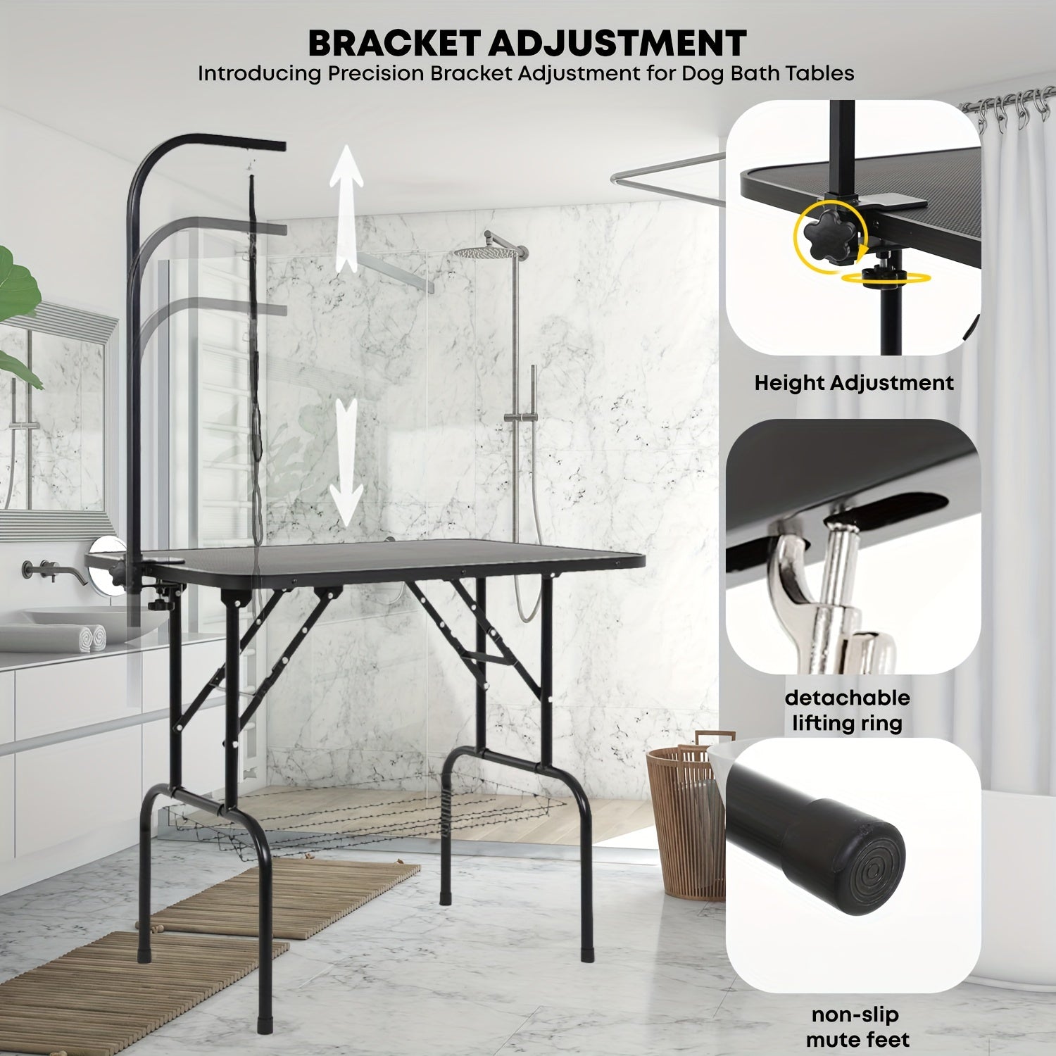 - Height Adjustable: Customize the arm height to suit your preference, ensuring optimal positioning for your pet during grooming sessions.