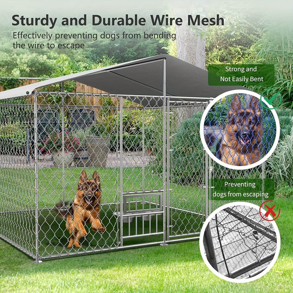 Give your furry friend the ultimate outdoor experience with our Extra-Large Outdoor Dog Kennel, measuring a generous 10x10x7 feet. This spacious kennel is designed for safety, comfort, and versatility, ensuring your pet has a secure environment to play and thrive.