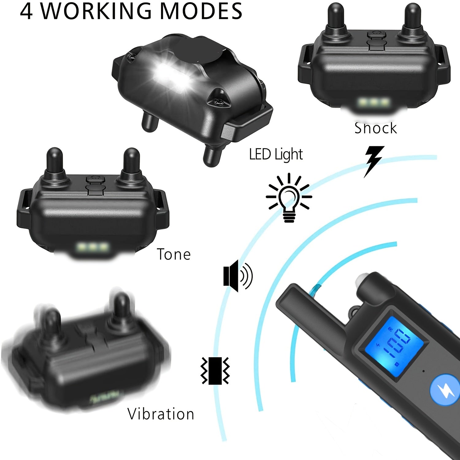 Constructed from high-quality, adjustable nylon, this collar ensures a comfortable fit for your dog, regardless of size. The collar features multiple training modes, including: