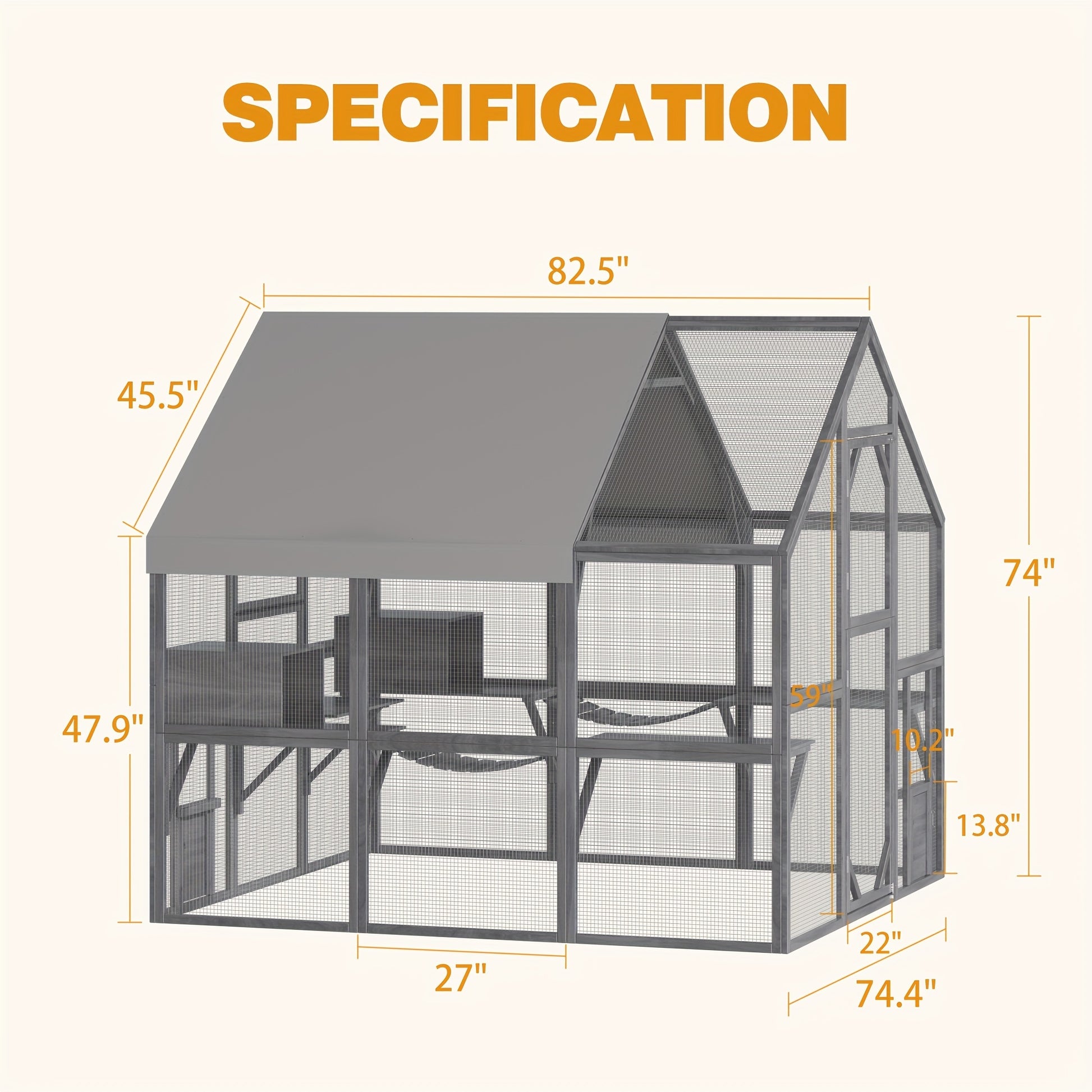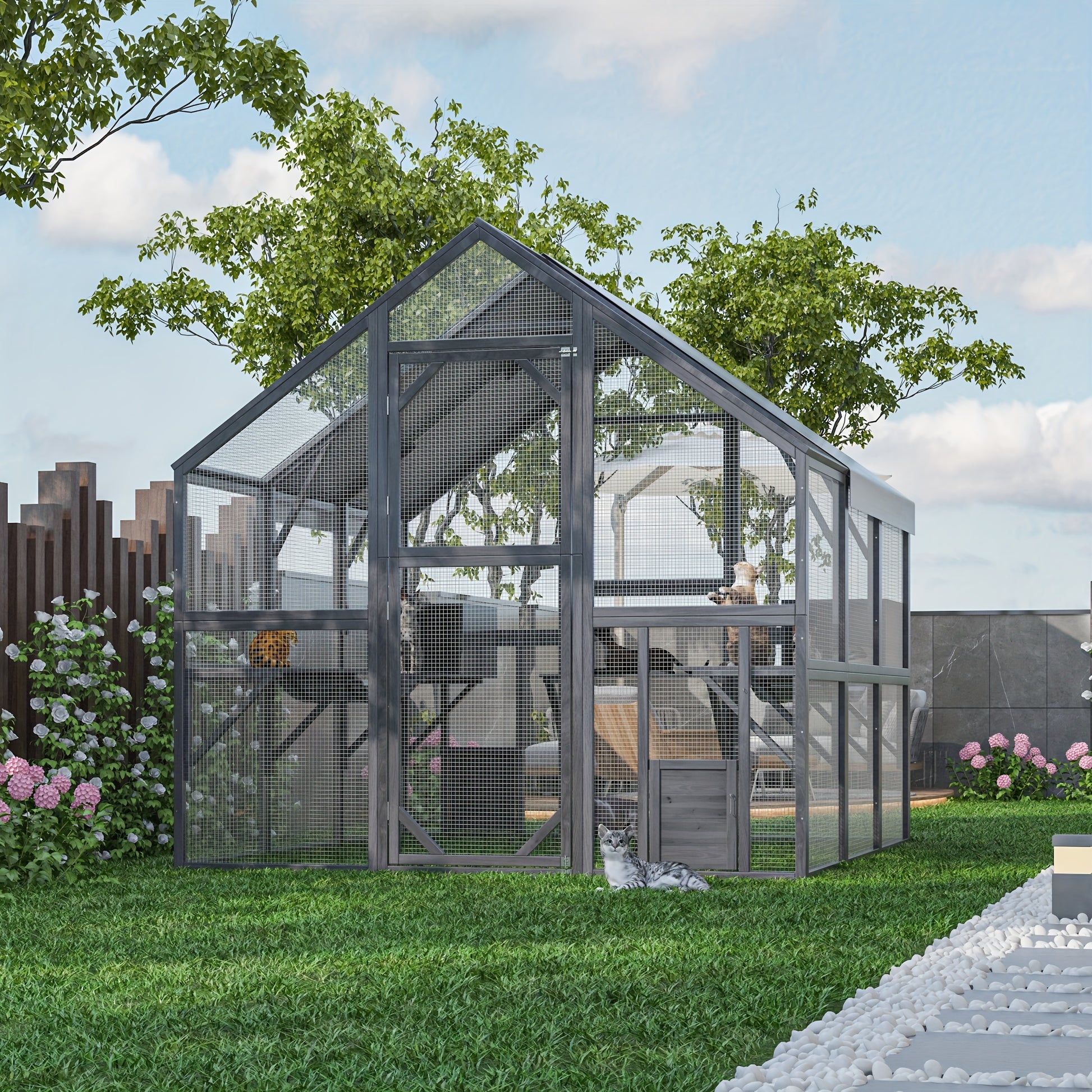 Introducing the Spacious Outdoor Cat and Chicken Exploration Enclosure for Safety, a perfect solution for pet owners who want to give their furry friends and feathered companions a secure outdoor experience. This high-quality enclosure by FUFU&GAGA features a robust metal construction and a stylish grey color, making it not only functional but also aesthetically pleasing for your backyard.
