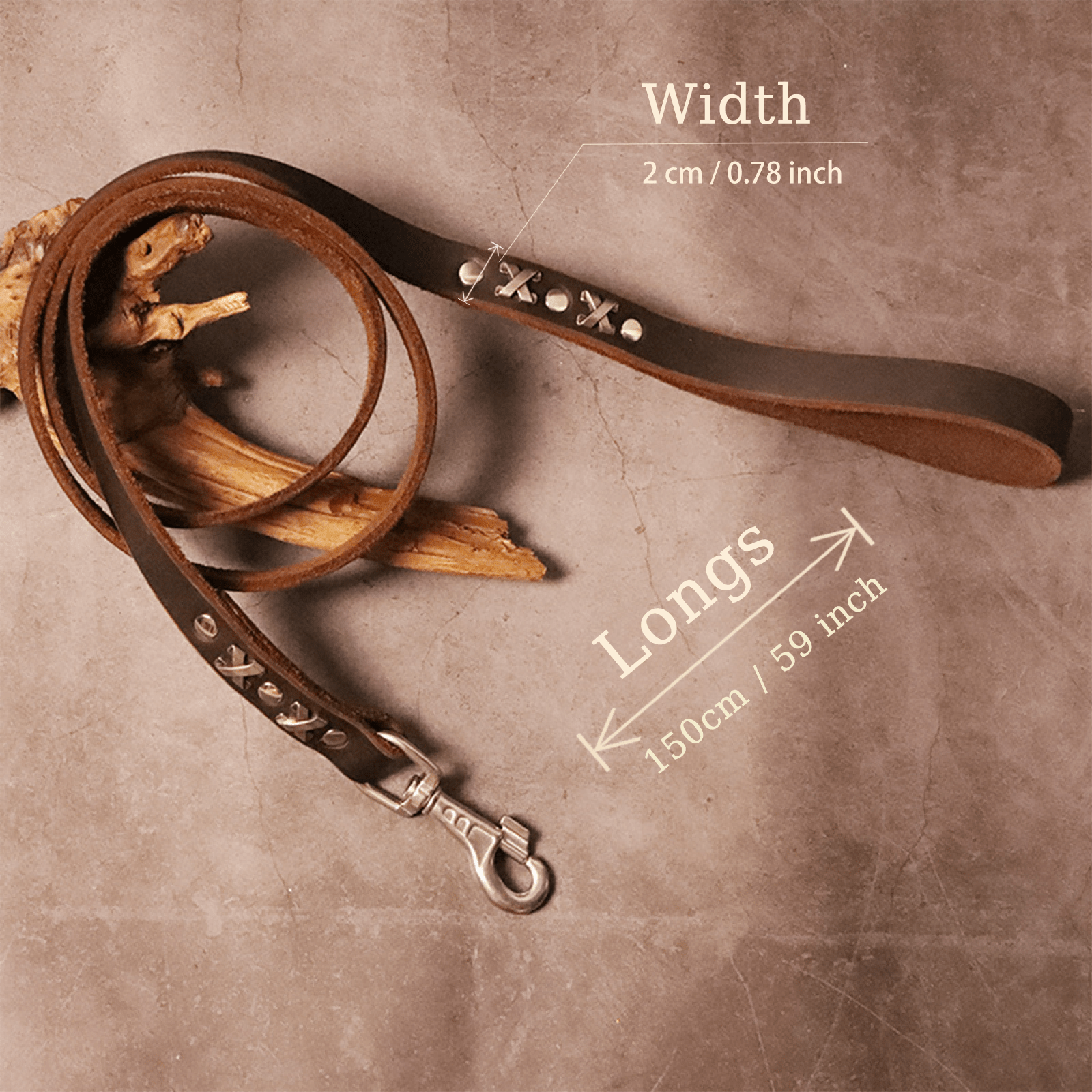 Introducing the Heavy Duty Dog Training Leash—your ultimate companion for comfortable and stylish dog walks! Handcrafted with love, this leash features a stunning retro rivet design that not only enhances your dog's appearance but also ensures durability for all breeds, from small to large.