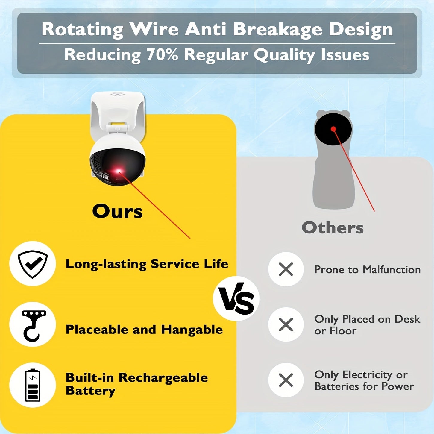 - Automatic On/Off Feature: The toy automatically shuts off after 15 minutes, then resumes after 3 hours, providing entertainment even when you're away.