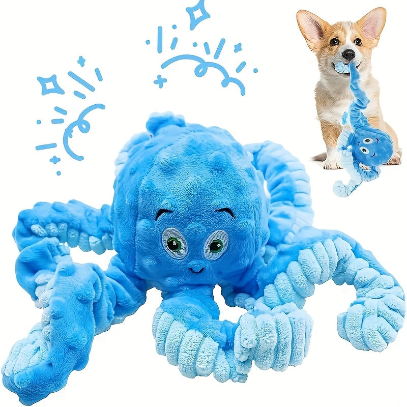 Durable Interactive Squeaky Plush Octopus Dog Toy Chew Resistant