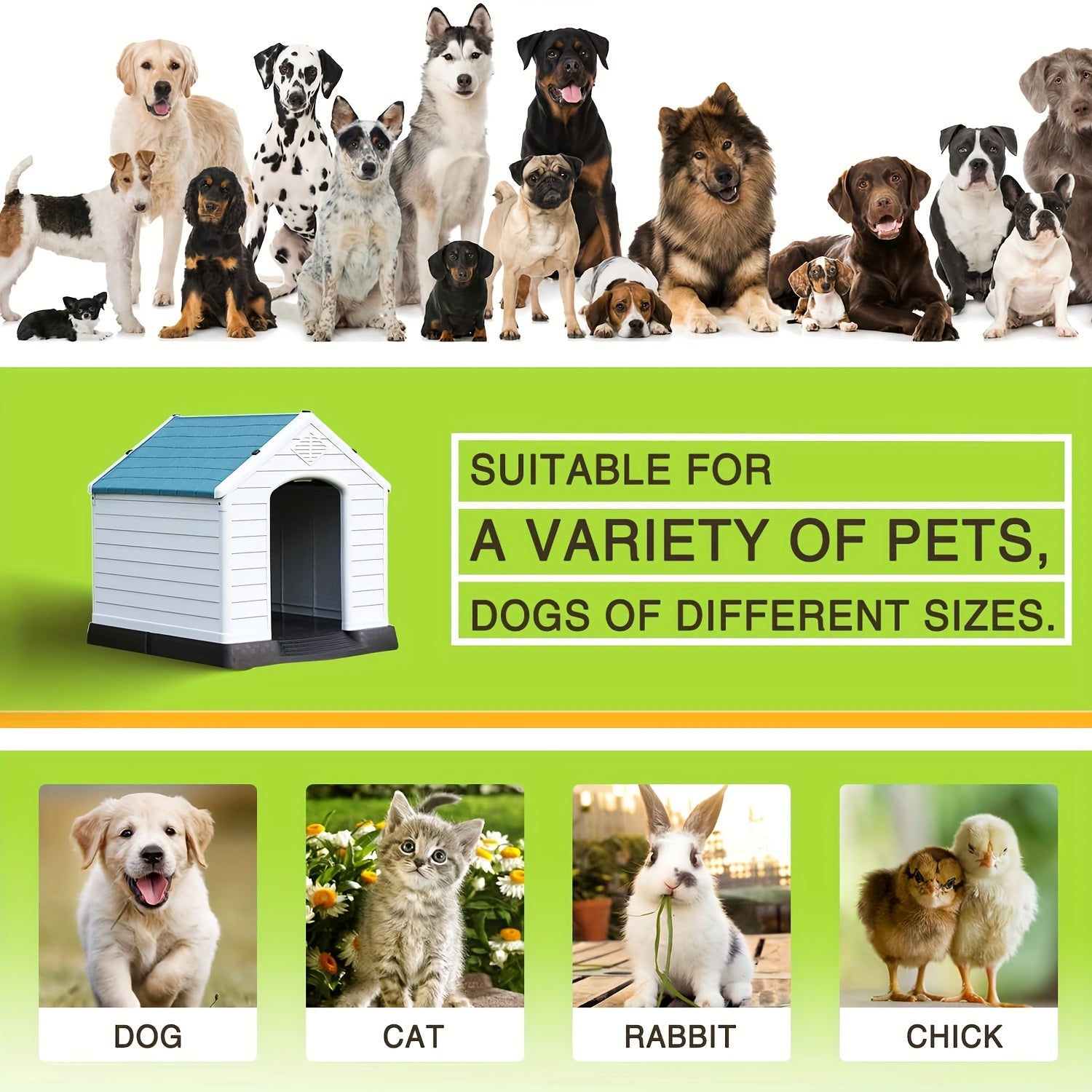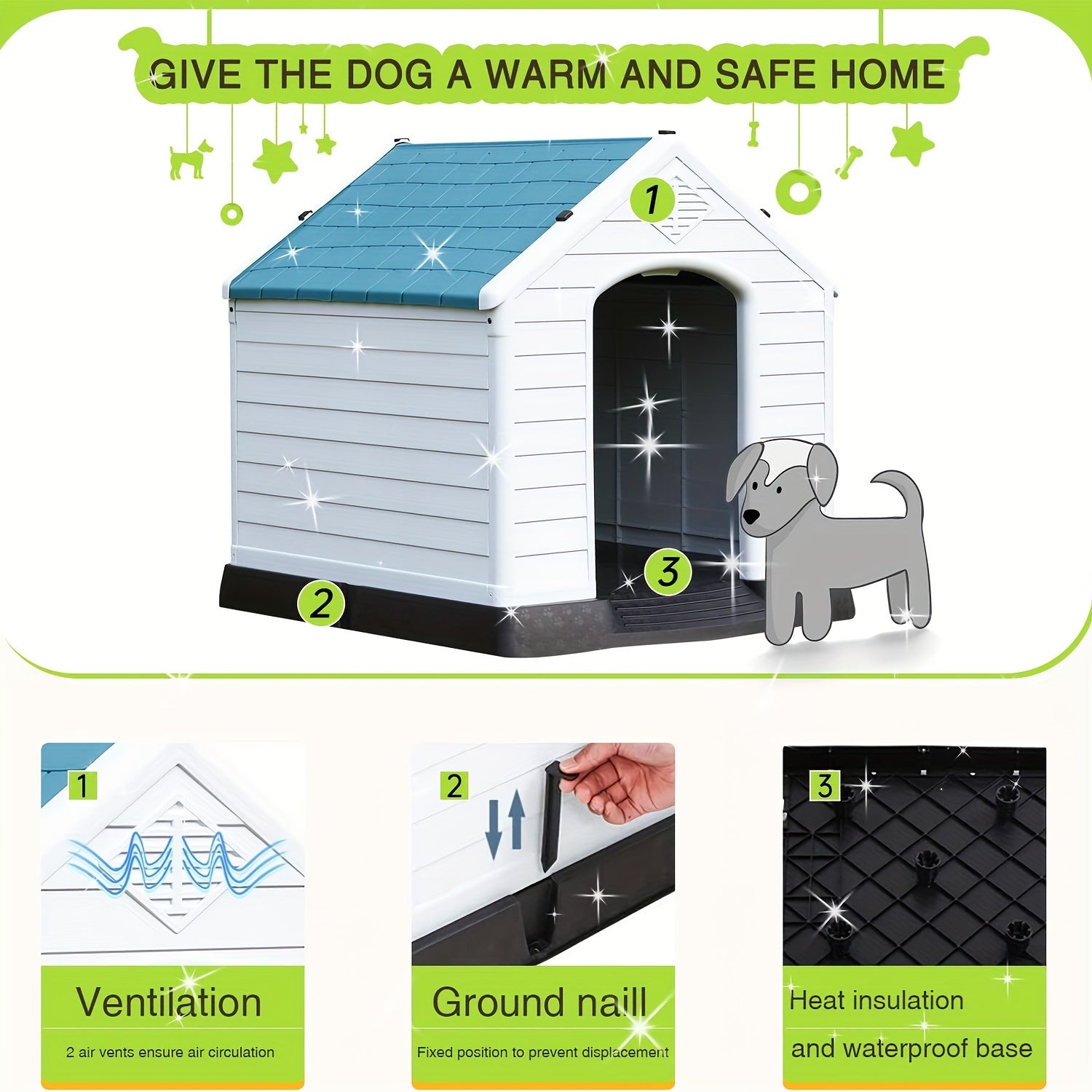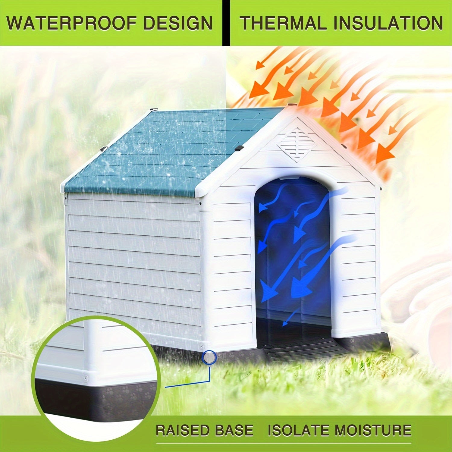 Introducing the Durable Waterproof Dog Shelter – the ultimate solution for providing your furry friend with a cozy and secure outdoor space. Crafted from high-quality plastic, this dog shelter is designed to withstand the elements, ensuring your pet remains comfortable and protected from rain, wind, and harsh sunlight.