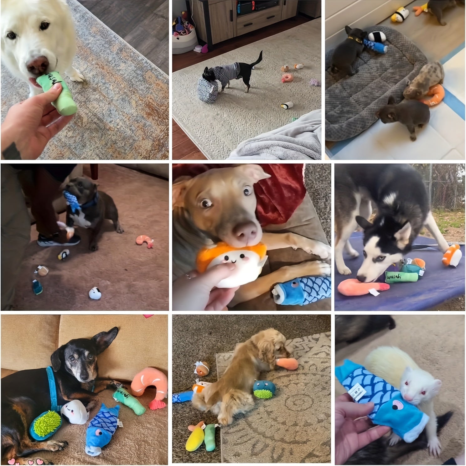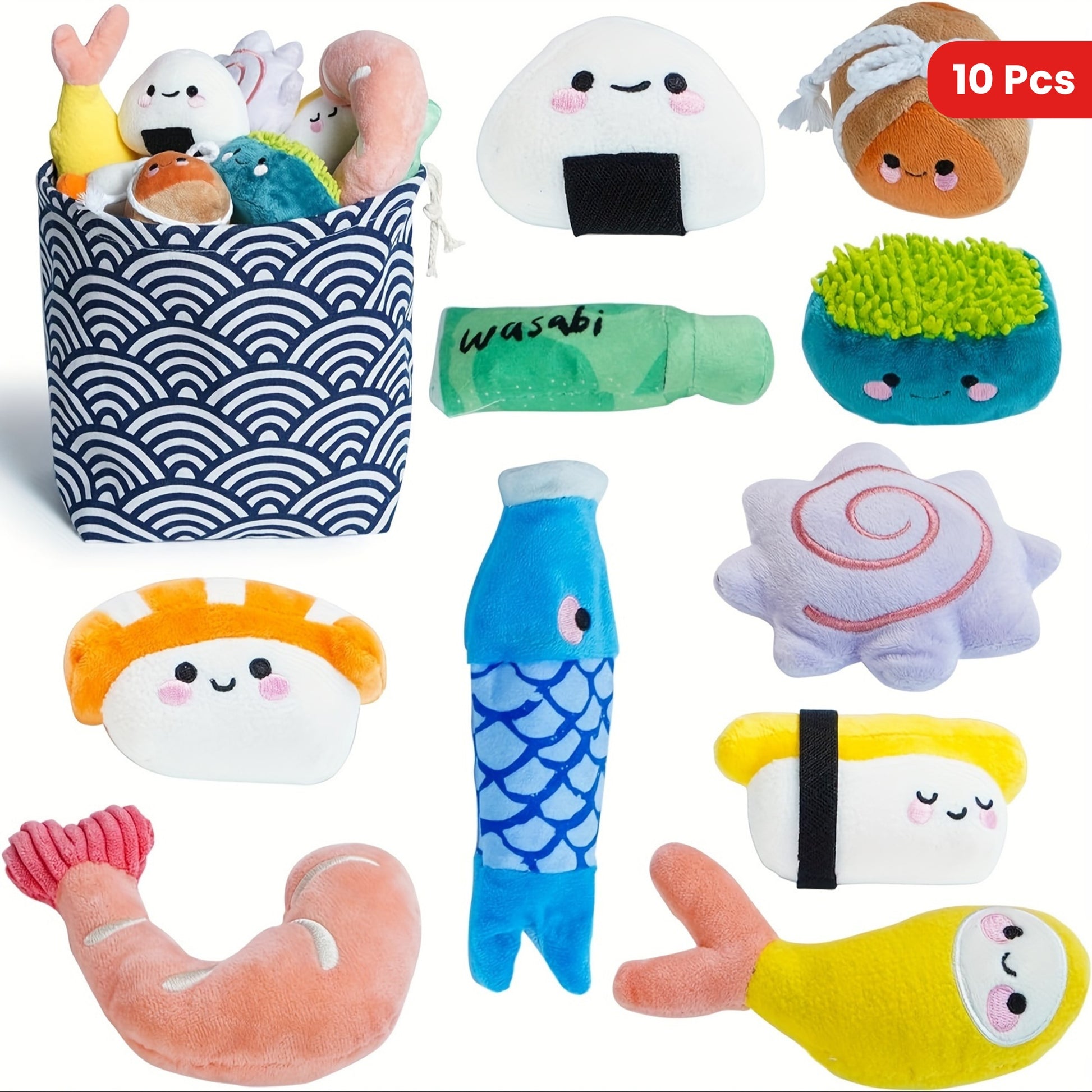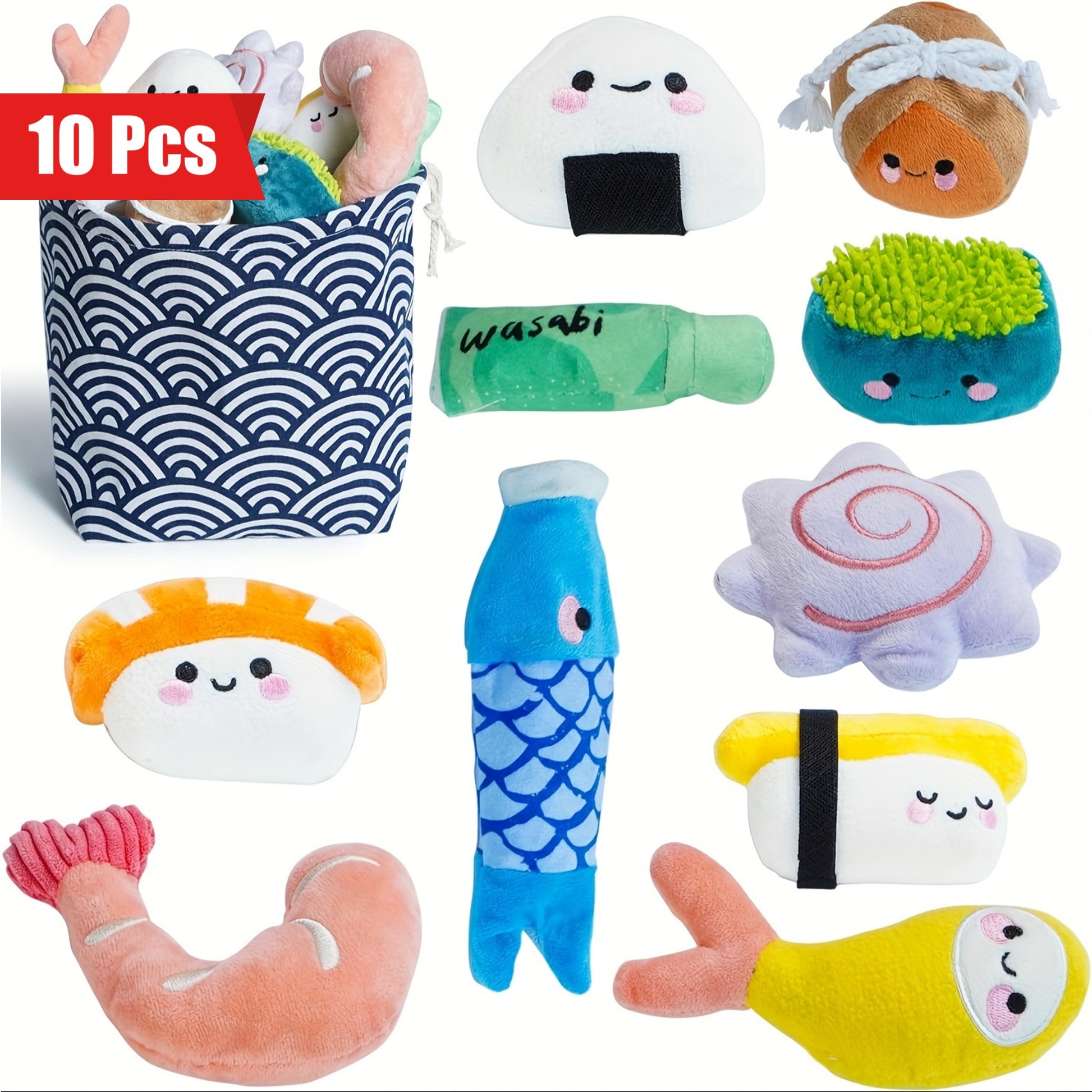 - Variety of 10 Unique Plush Sushi Toys: Includes different sushi shapes, offering a fun and diverse play experience that stimulates your dog's senses.
