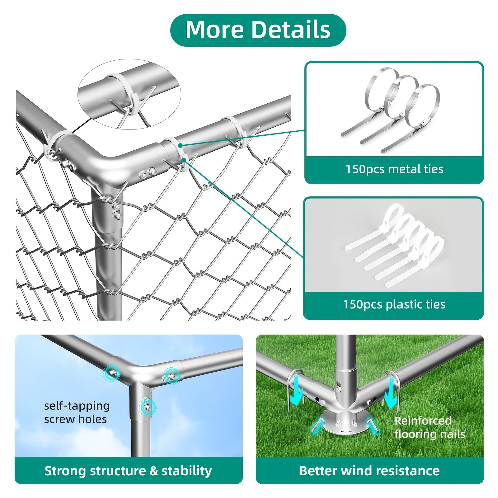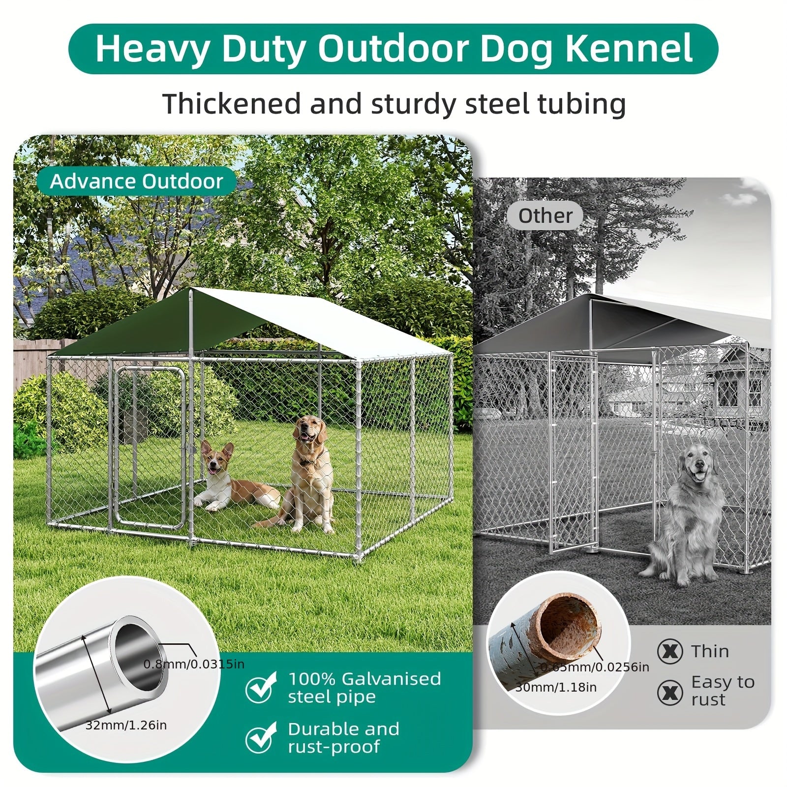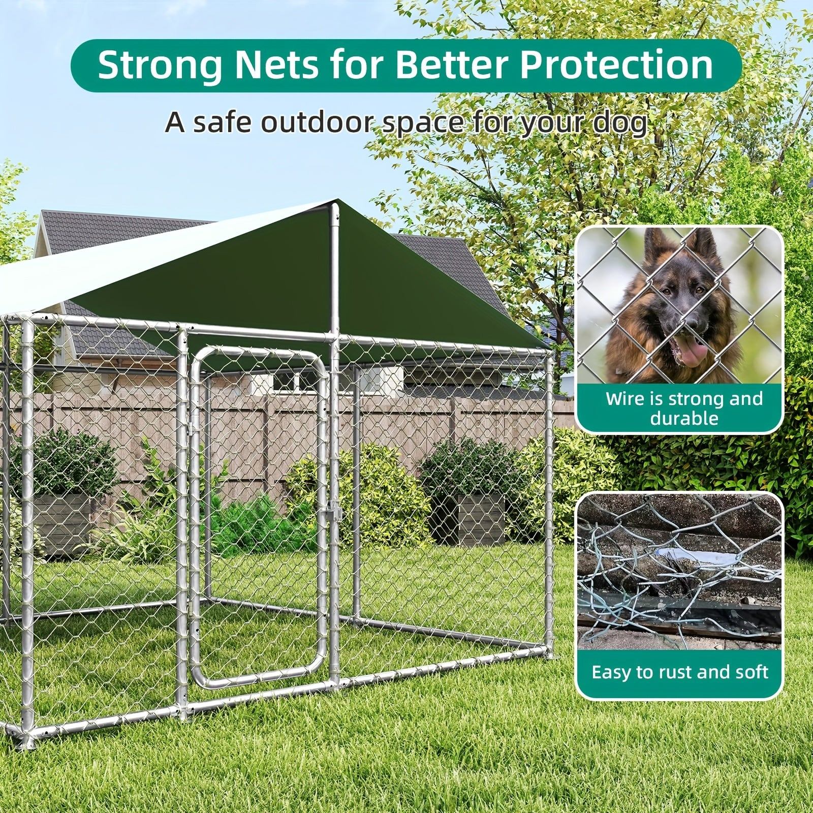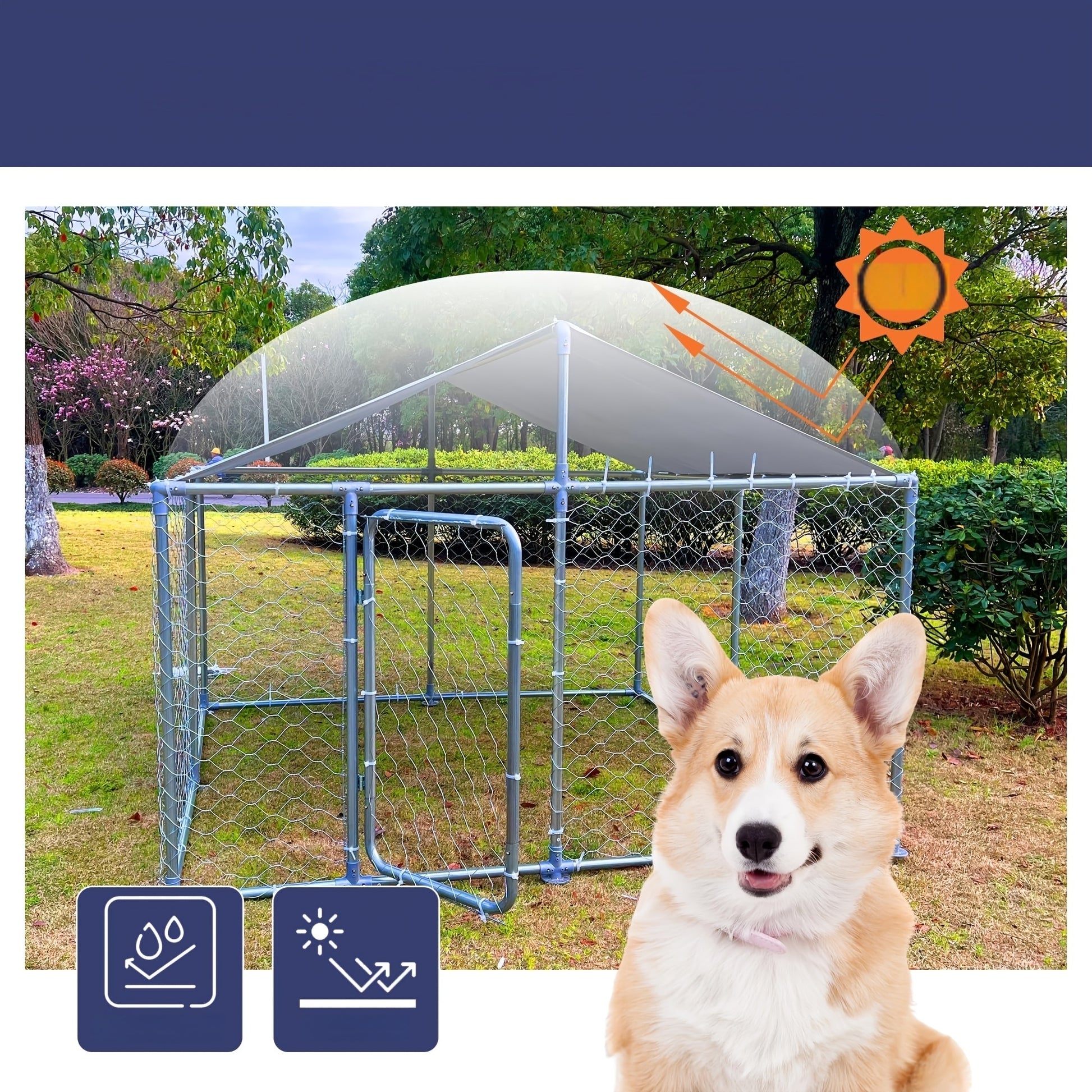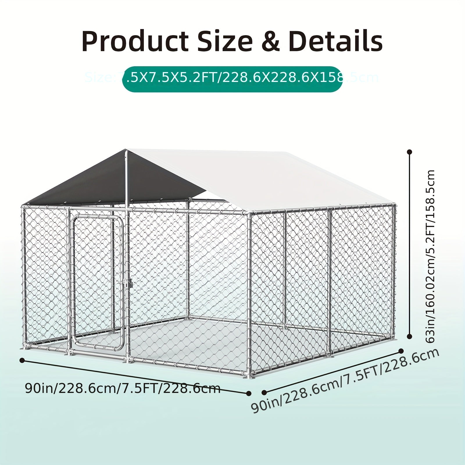 Give your furry friend the freedom to roam safely with the Outdoor Dog Kennel! This heavy-duty dog enclosure measures an impressive 90" L x 90" W x 63" H, offering ample space for your pets to play and relax. Designed for durability, it features a robust steel frame that ensures lasting stability, making it perfect for both small and large dogs.
