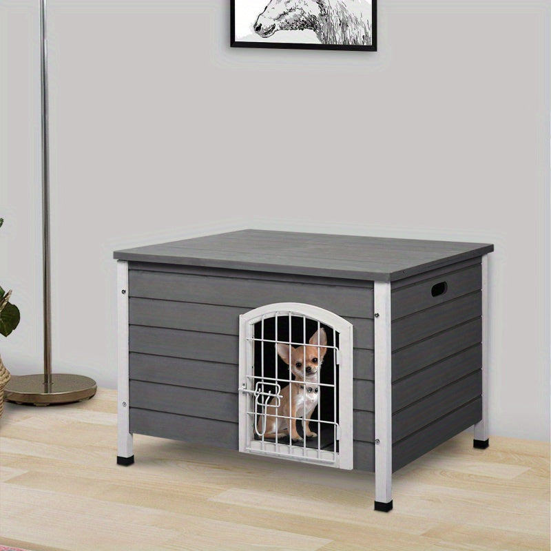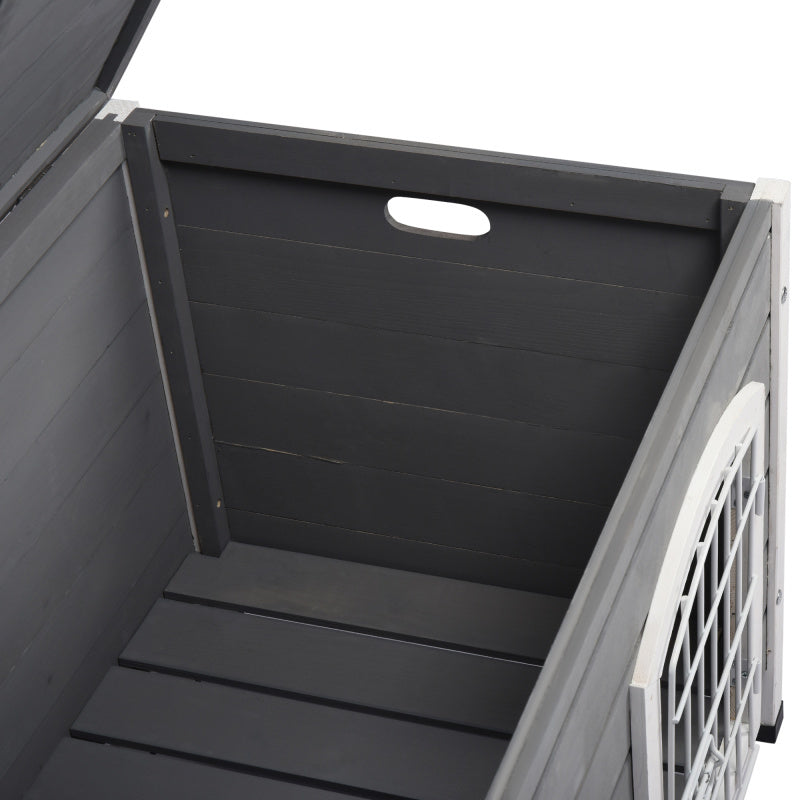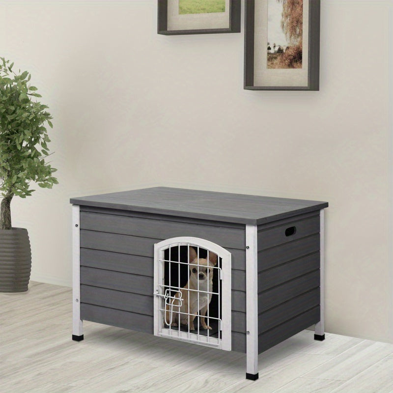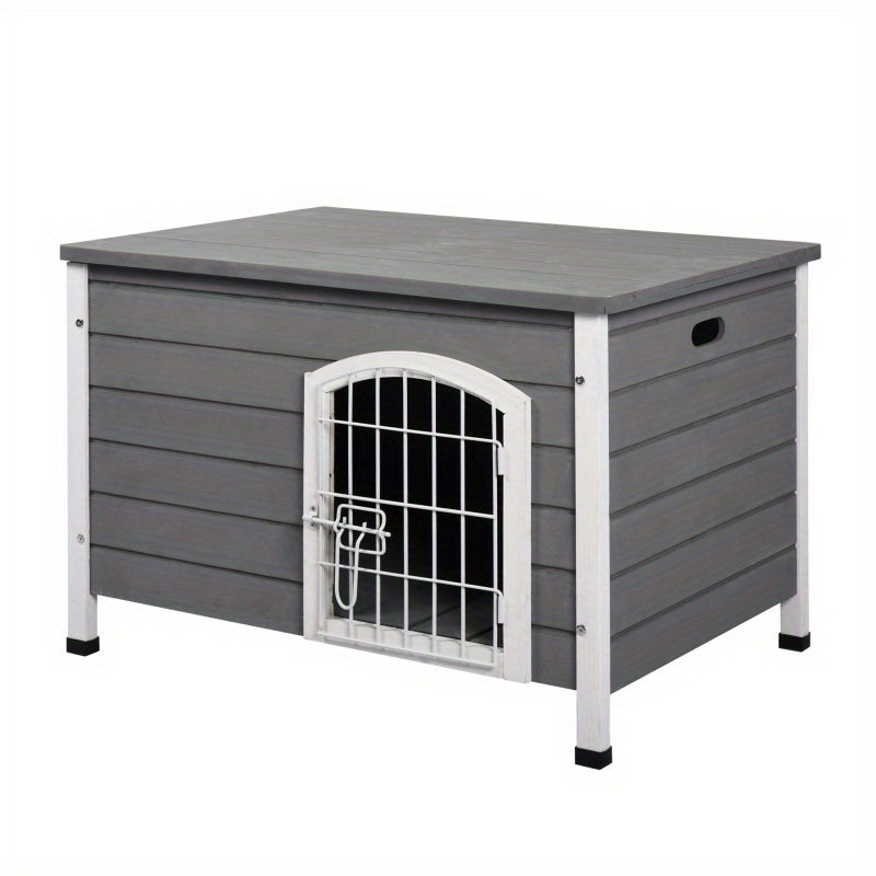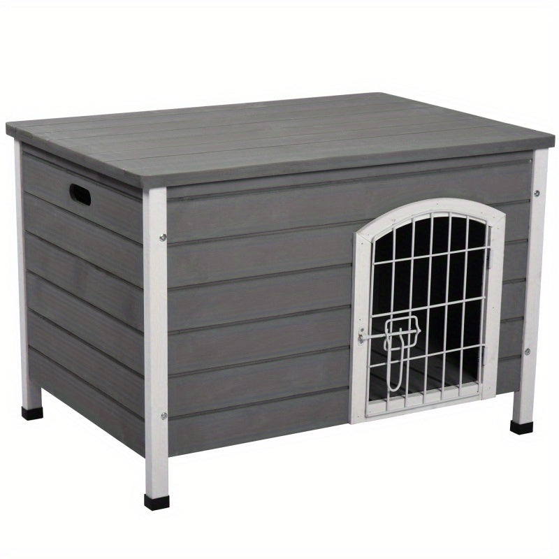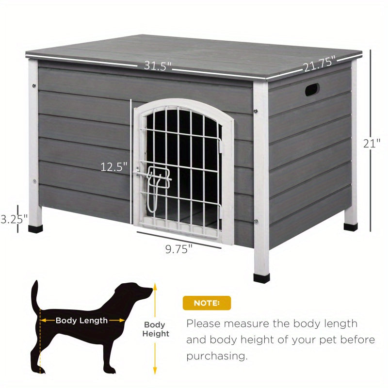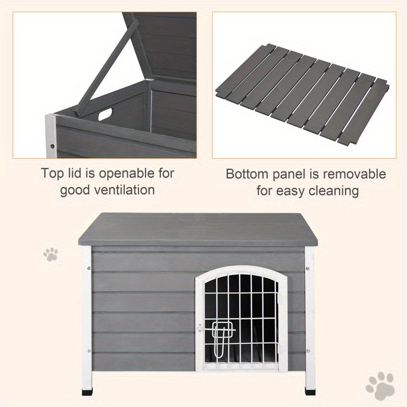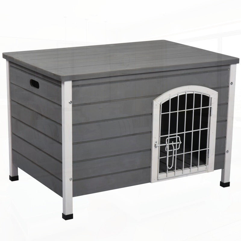 Introducing the PawHut 31"L Wooden Dog Kennel, a perfect blend of style and functionality that your furry friends will adore! This kennel features a sleek grey design, making it an attractive addition to any garden or patio.
