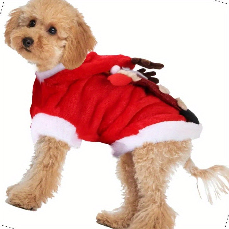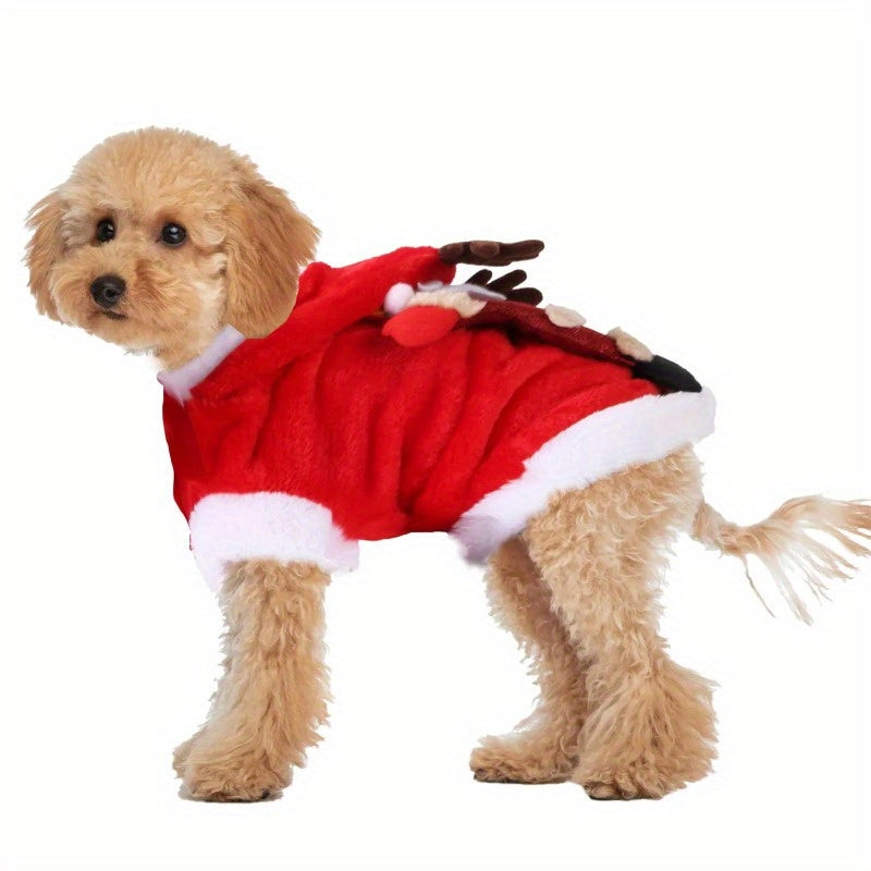 Festive Pet Santa Claus Reindeer Antlers Costume for Holidays