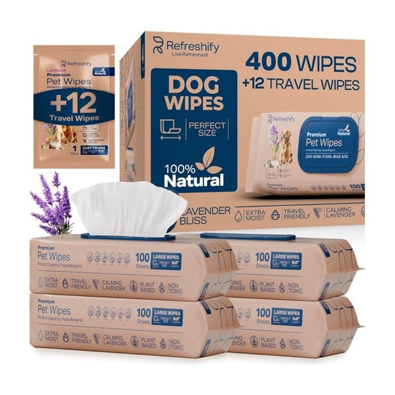 Introducing our Pet Wipes for Dogs and Cats - a comprehensive 400 pack of premium dog wipes, designed for every furry friend in your family. Each wipe is infused with the soothing scent of lavender, making cleanup a delightful experience for both you and your pet!