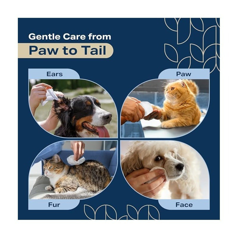 Crafted with 100% organic and plant-based ingredients, these wipes are enriched with Vitamin E and Aloe Leaf, ensuring a gentle touch on your pet’s skin. They are hypoallergenic, alcohol-free, and safe for all breeds and sizes, making them perfect for everyday use.