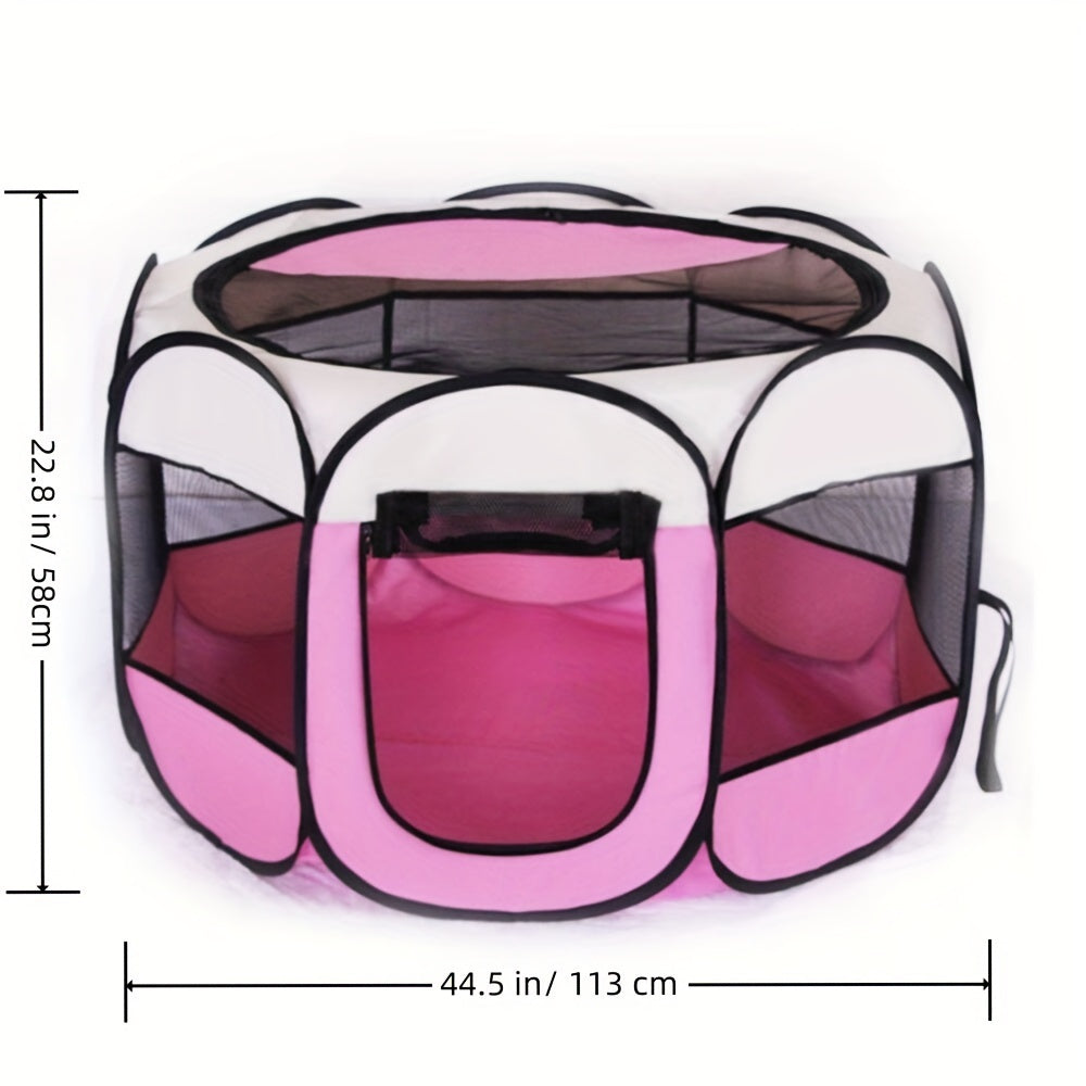 Introducing the Spacious Outdoor Pet Tent and Playpen for Dogs and Cats - the ultimate solution for pet owners seeking a safe, comfortable, and versatile space for their furry friends. Measuring an impressive 44.5 x 44.5 x 22.8 inches, this large playpen offers ample room for your pets to play, relax, and enjoy the great outdoors. Whether you're camping, going to the beach, or just enjoying some time in the backyard, this portable outdoor pet tent is designed for convenience and ease.