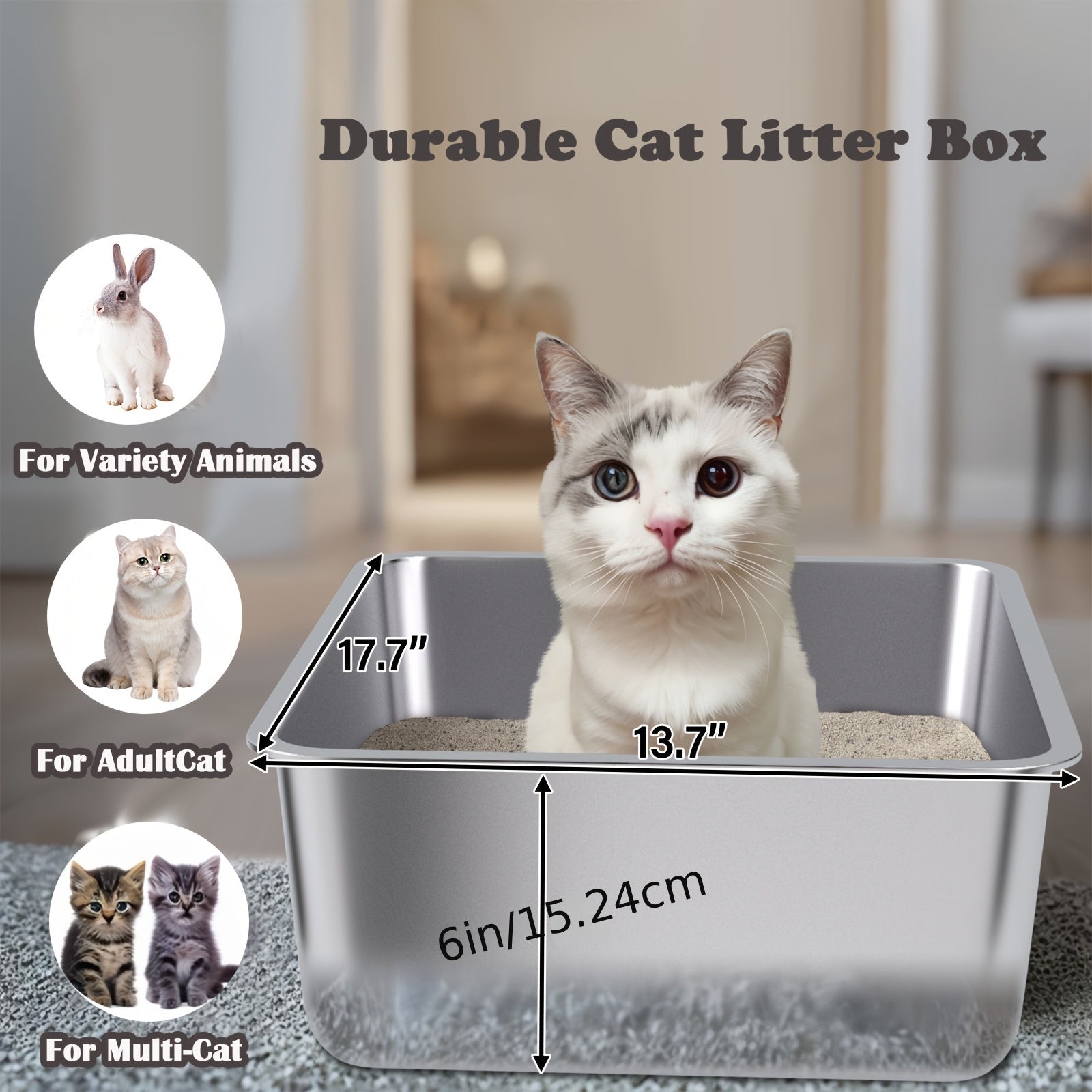 Transform your pet's hygiene routine with our Stainless Steel Cat Litter Box for Easy Cleanup and Odor Control. Constructed from high-quality stainless steel, this rectangular litter box is designed not just for durability but also for superior hygiene. Unlike traditional plastic options, stainless steel resists staining and odors, ensuring a fresh and clean environment for your feline friend.