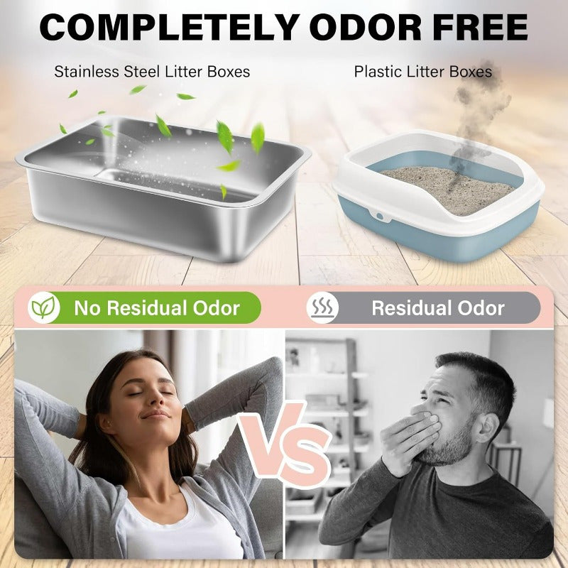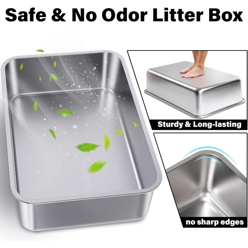 Stainless Steel Cat Litter Box for Easy Cleanup and Odor Control