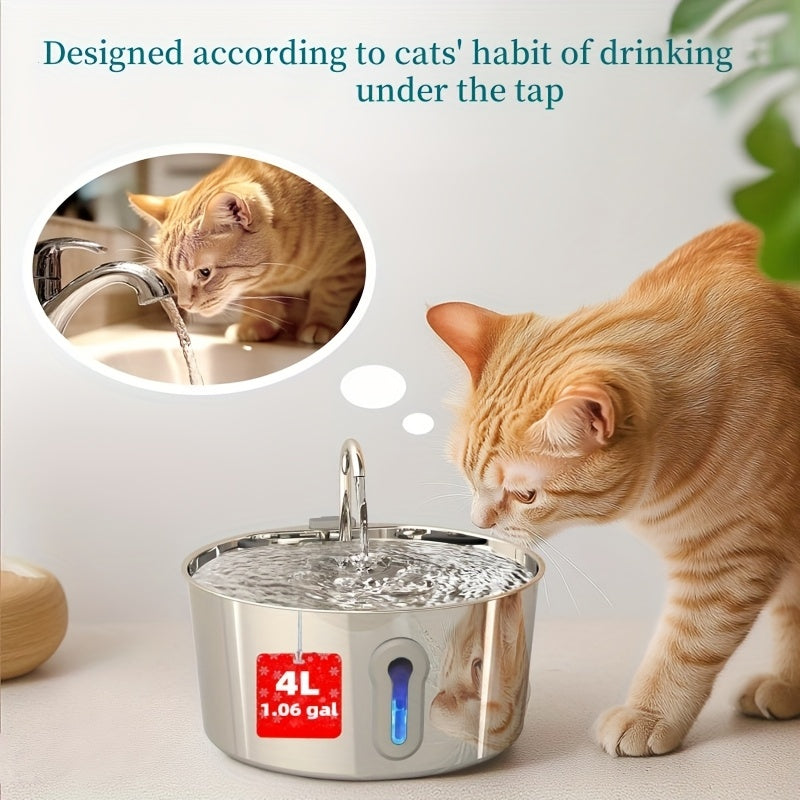 Keep your furry friends hydrated and happy with the Stainless Steel Cat Water Fountain. This 135oz/4L Automatic Pet Fountain is designed to cater to both cats and dogs, making it the perfect water dispenser for multiple pets.