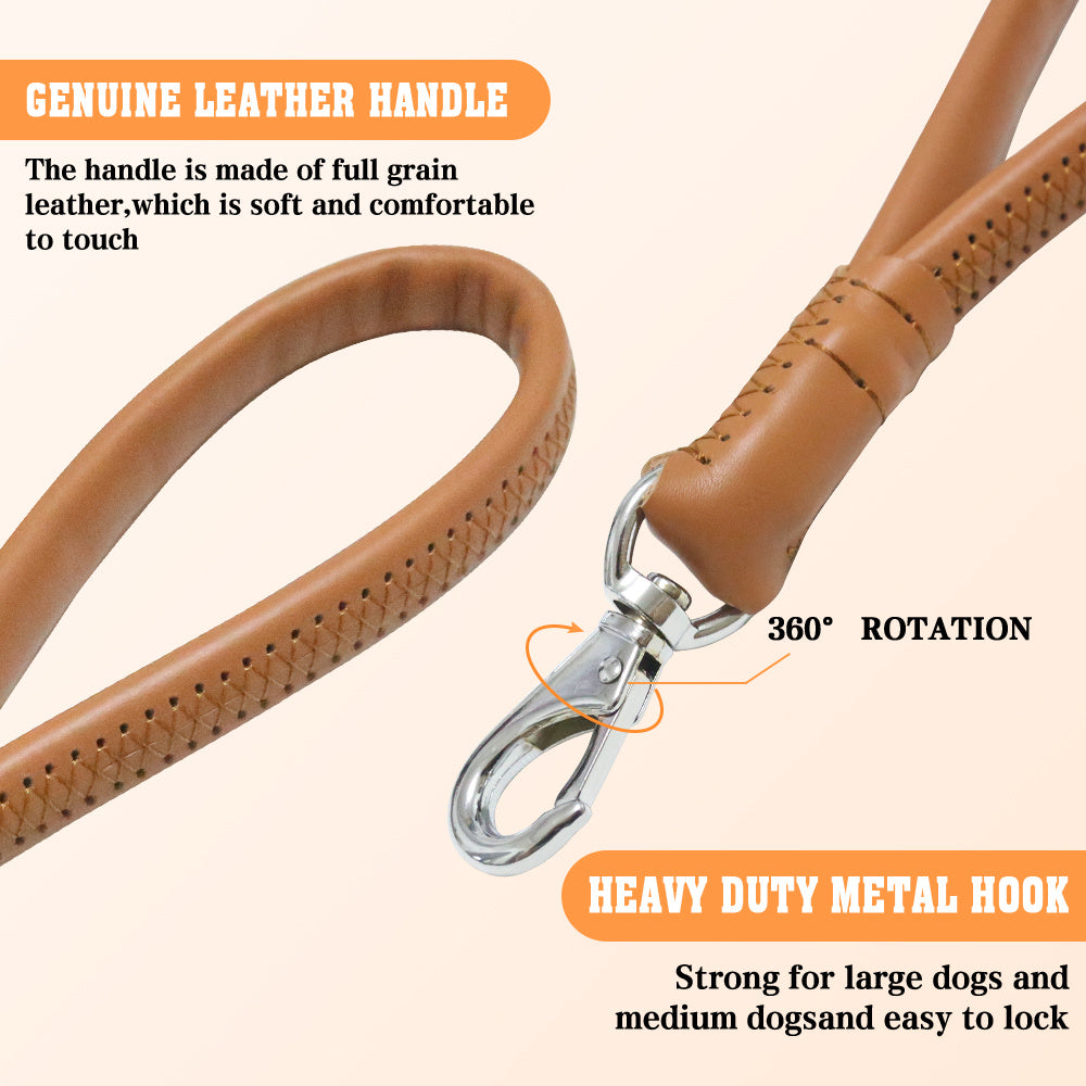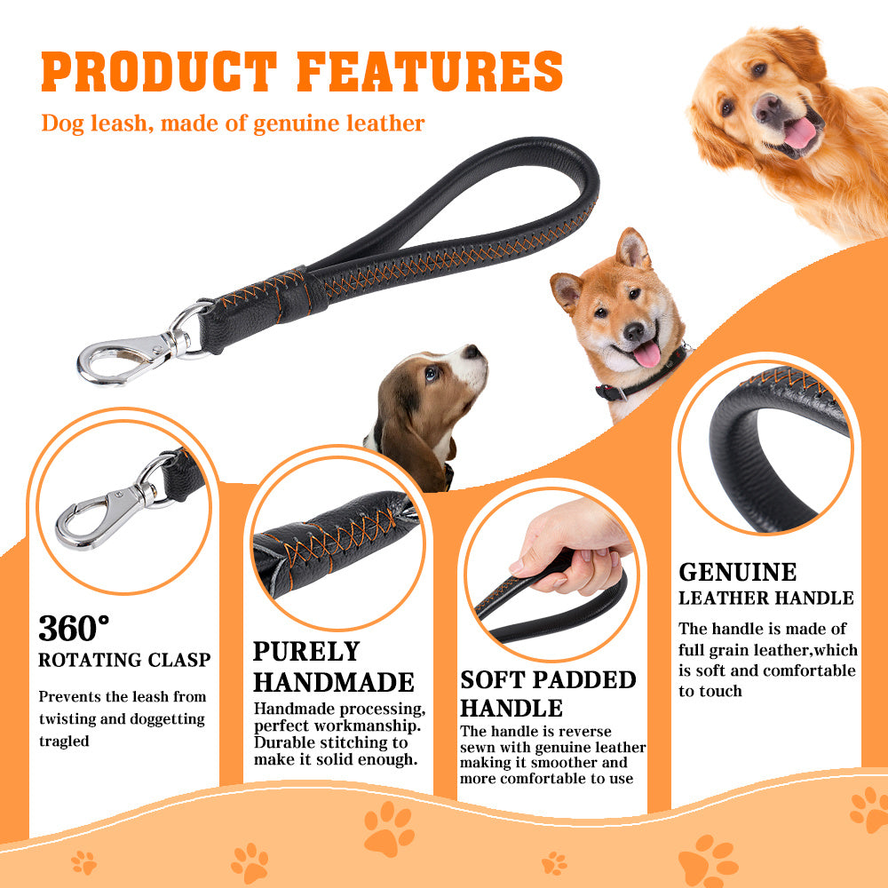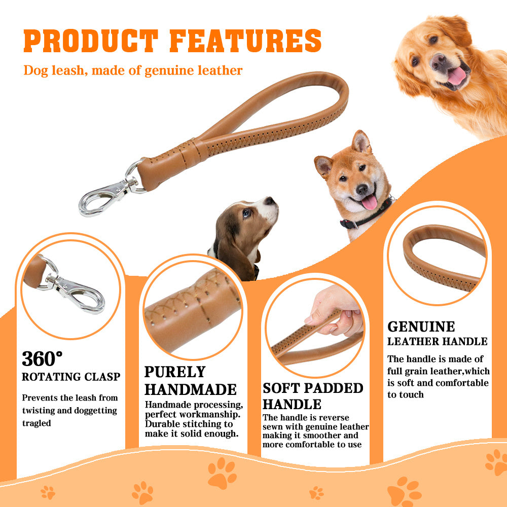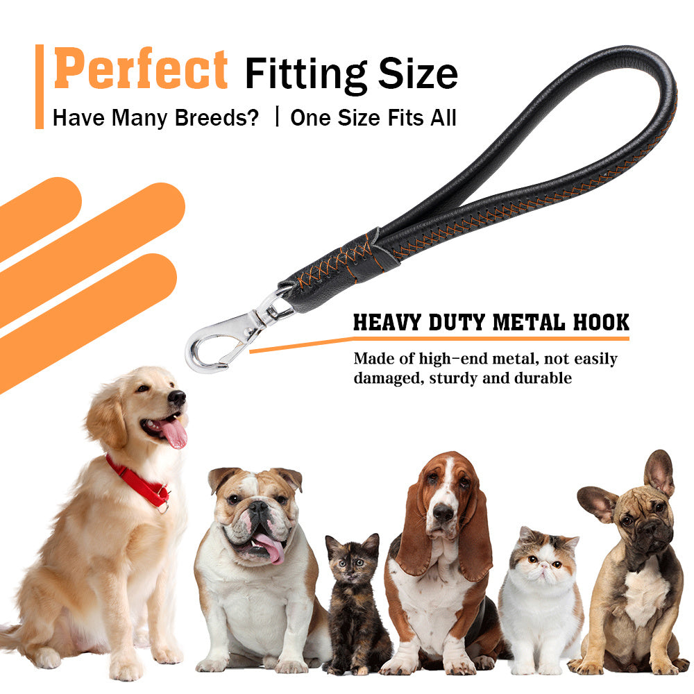 Crafted from premium leather, this durable leash ensures that you can rely on it for years to come. Its heavy-duty construction is perfect for managing your energetic pet during walks, while the short design allows for better control in crowded environments.