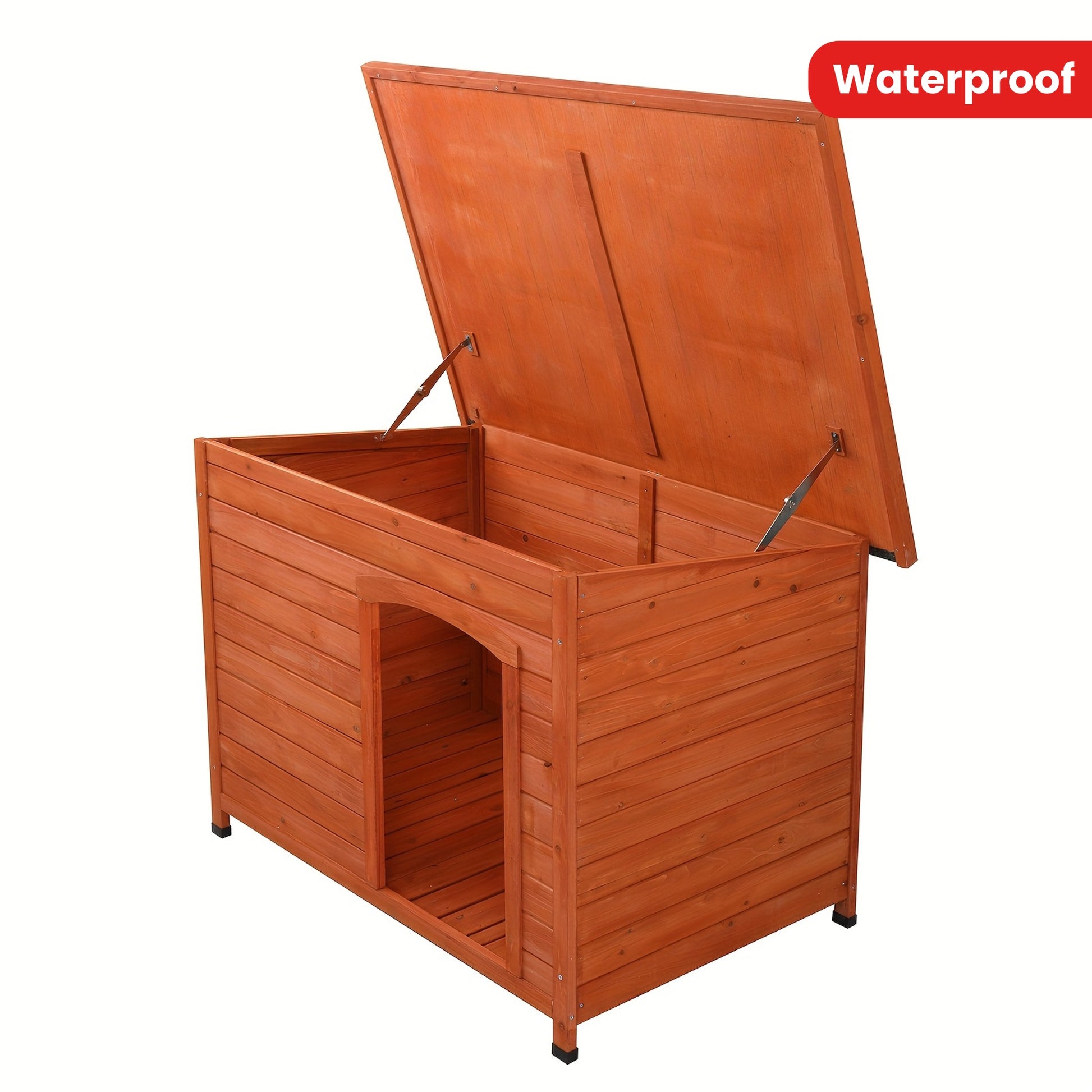 Waterproof Wooden Dog House with Hinged Roof and Raised Floor