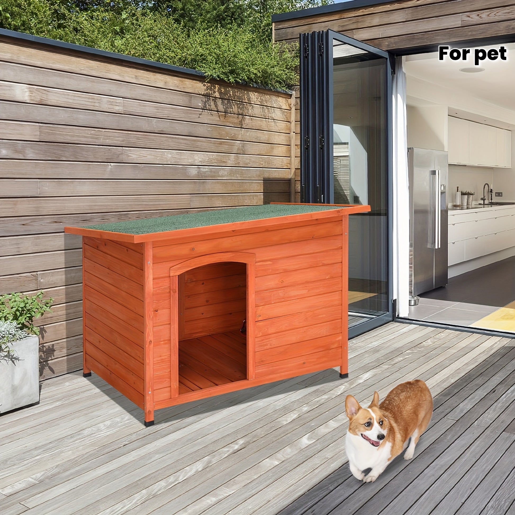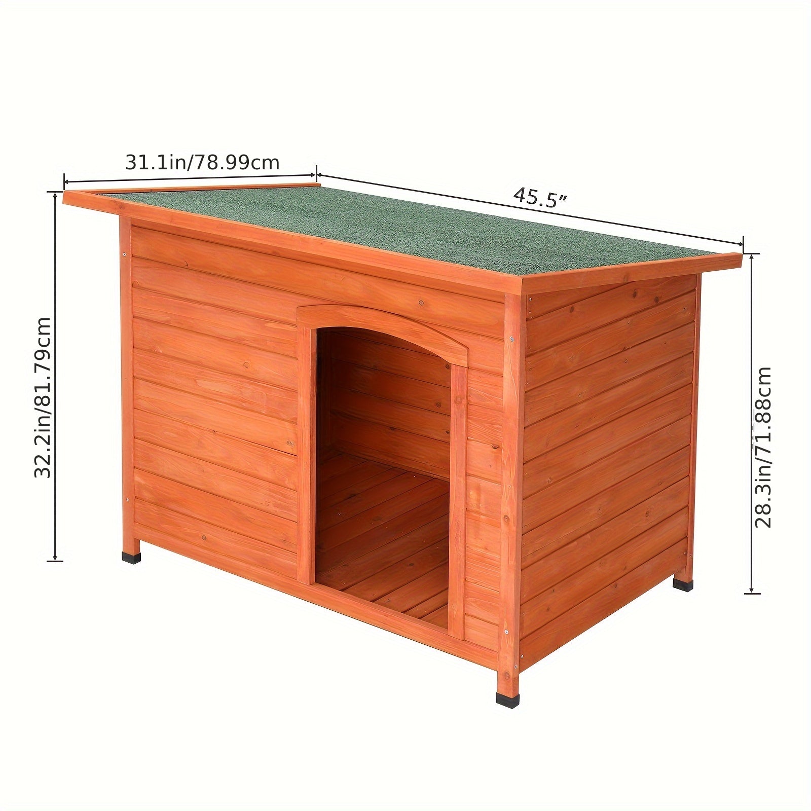 The dimensions of 45.5 x 31.1 x 32.2 inches provide ample space for your pet to move comfortably. With a load-bearing capacity of 30kg, this shelter is both sturdy and reliable. The natural wood color and green asphalt roof add an aesthetic touch to your backyard or garden.